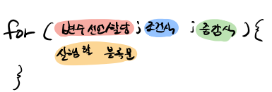 위와 같이 이루어진게 for 조건문이다. 각 부분별로 설명하자면