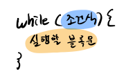 while: 조건식검사 → 블록문 실행 → 조건식 검사 → 블록문 실행 …